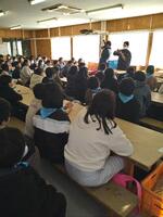 4年生対象に防災の授業を行いました。松葉地区の青少協、ふるさと協議会の会長様に来ていただき、各学級で防災について1時間ずつお話をいただきました。