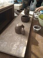 陶芸体験の時間です。カップやお皿などそれぞれ思いを込めて制作しました。