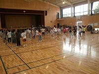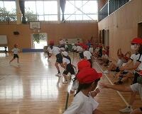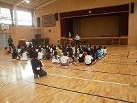 その中の1つ、20mシャトルランは規定のリズムに合わせ、どれだけ往復して走れるか記録しています。スポーツテスト初挑戦の1年生は、6年生のサポートを受けて取り組んでいます。
