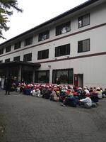 今回は火災を想定した訓練です。放送を聞き、子どもたちは「お・は・し・も」を守って校庭へ避難しました。