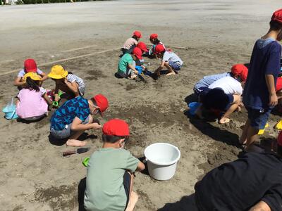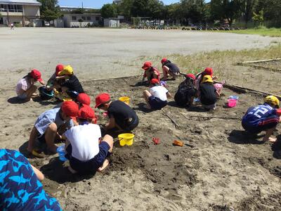 友達と協力して川をつくったり、手作りの足湯につかってみたり・・・みんな泥だらけになって楽しみました。