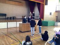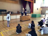 今日はこども県展の表彰を昼休みに体育館で行いました。14名の入選児童に賞状と記念品が渡されました。