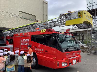 はしご車。このあと記念写真を撮りました。