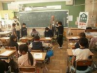 4年生対象に防災の授業を行いました。松葉地区の青少協、ふるさと協議会の会長様に来ていただき、各学級で防災について1時間ずつお話をいただきました。