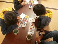 昔の暮らしについて説明を聞いたり、体験として「畳コースター」「どろめんこ」「千代紙ろうそく」をつくりました。