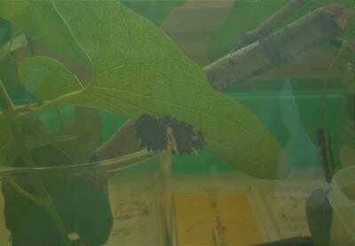やはり、見たことがない幼虫。名前を聞いてみるとジャコウアゲハの幼虫だそうです。食料はウマノスズクサという植物でこれもあまり聞いたことがない植物。どんな成虫になるのか楽しみです。