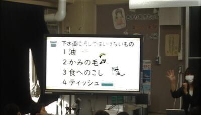 今日は4年生が下水道についての出前授業を受けました。