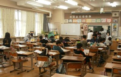 今日の朝学習の時間に図書ボランティアの方の読み聞かせがありました。子どもたちは真剣にボランティアの方の話を聞いていました。