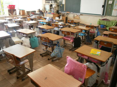 1年生の教室の前を歩いていた6年生は1年生の教室に1次避難していました。命を守るためなら最善の方法をとる事が大事。