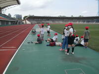 「位置について」 「1周400m」 「何周走ったの?」「3周走りました。もう限界」