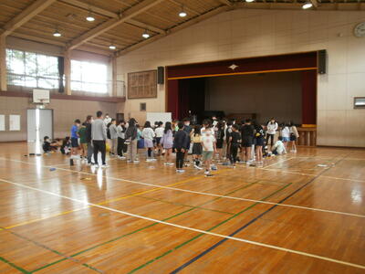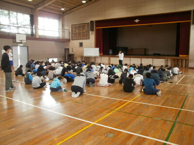いよいよ3日後に迫った5年生の林間学校。昨日、体育館でしおりをもとに細かな事前説明が行われました。子どもたちはメモをとりながら聞き漏らさないよう真剣に説明を聞いていました。