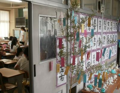 昨日は七夕でした。校内の色々な場所でこんな光景が見られました。