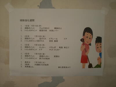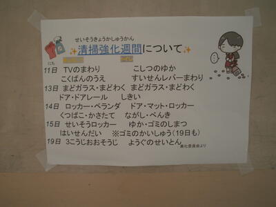 昨日から清掃強化週間が始まりました。夏休みを前に普段あまりできないところを特に掃除します。ところで美化委員会の子が作ったポスターを見てください。
