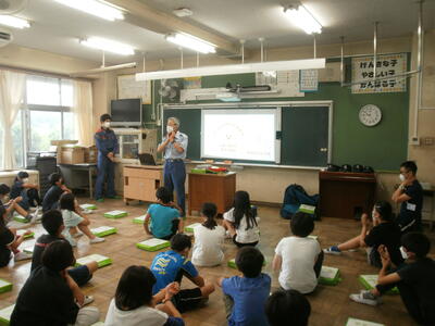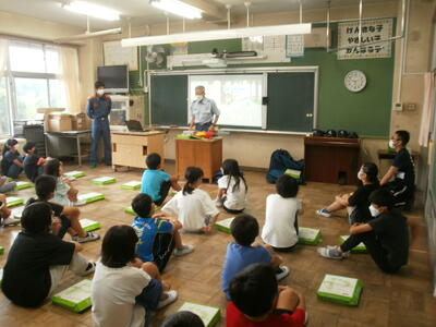救命隊員の方から説明を受けます。