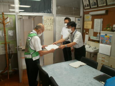 最初にこのたび交通安全推進隊を引退される東野様へ感謝状贈呈。10年以上もの間、松葉二小の子どもたちを見守っていただきました。