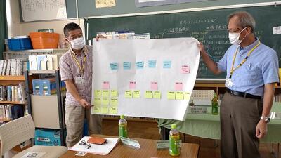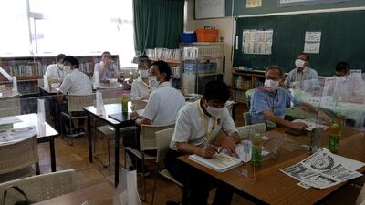 8月3日に本校で松葉中,松葉一小、松葉二小の3校と地域の方が集まり防災会議を実施しました。