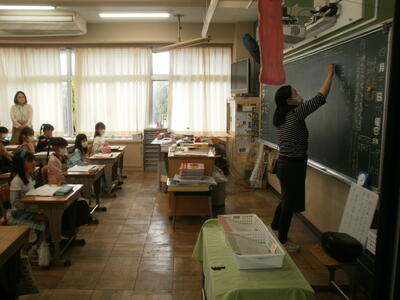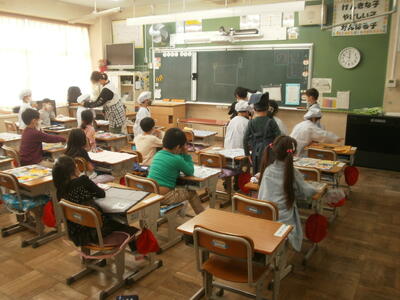 大勢の保護者に見られて緊張しながらも子どもたちは一生懸命学習をしていました。
