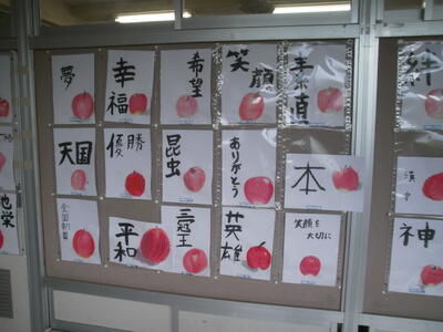 とてもおいしそうに描けたリンゴの絵と言葉が描いてありました。リンゴが本当に上手で感心しました。それにしてもこの言葉は今年の目標かな?