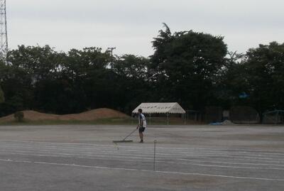 グランドを整備する先生