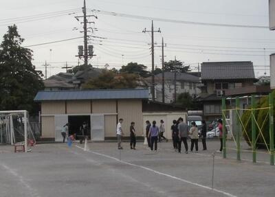 保護者用のトイレは体育館になります。外から入ってください。今回は立ち見となりますので疲れた場合は体育館を開放しますのでそちらでお休みください。体育館にパイプ椅子も用意しておきます。もちろん木の下やタイヤで休憩していただいてもかまいません。明日お待ちしています。