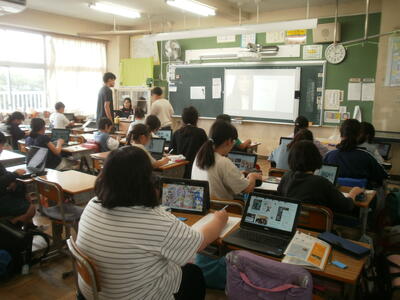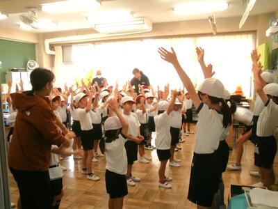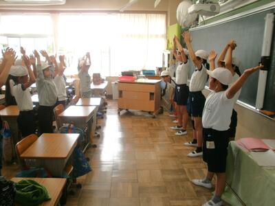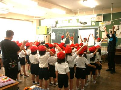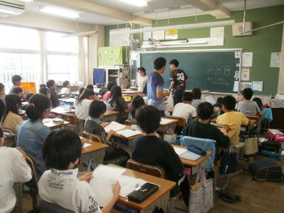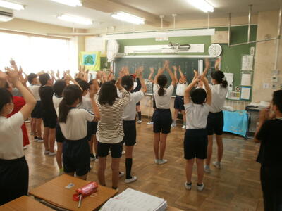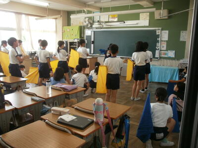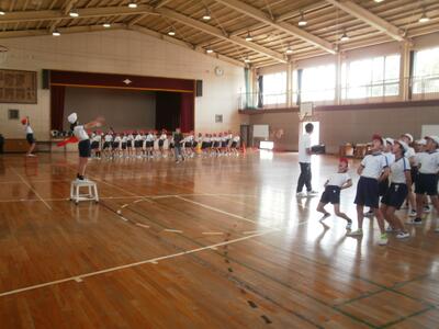今日の朝、応援団のみなさんが各学級に分かれて応援練習をしました。