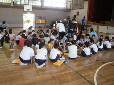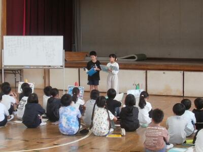 ペアの学年で自己紹介をし合いました。今後、学年のペアで相談して内容を決めていきます。