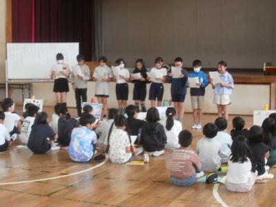 今回の議題は「クラスの目標を考えよう」です。各学級でより良い松葉二小にするにはというテーマで決めたものを職員室前に掲示します。後半は各委員会の委員長からお願いや連絡がありました。