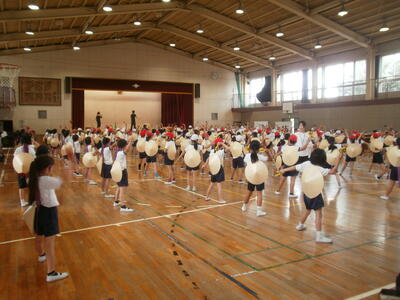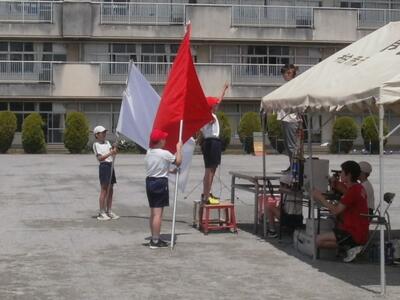 今日は6時間目に第2回目の運動会の係り準備がありました。本番さながらにアナウンスしたり、動きのチェックをしたりしていました。手の空いている子は校庭の水のたまりやすい場所に砂を入れて校庭を整備しました。