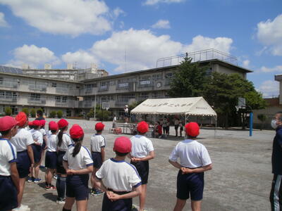 今日から明日にかけて風の心配もあることから危険性のあるテントの幌を6年生に手伝ってもらい外しました。急遽、放送でお手伝いをお願いしたところたくさんの6年生が手伝いに来てくれてあっという間に完了しました。頼りになります。