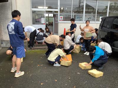放課後は職員で明日の雨に備えて、吸水スポンジの準備をしました。