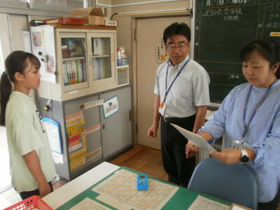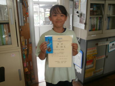 26日の日曜日にわんぱく相撲柏場所が行われました。参加した児童から準優勝の報告があり、職員室で表彰をしました。