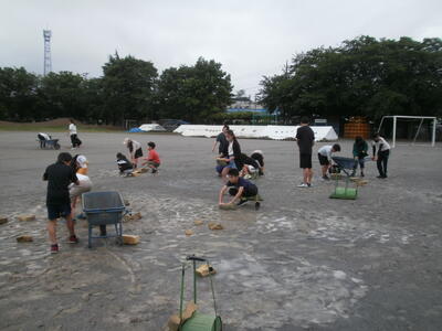 何とか明日、校庭が使えるようにという気持ちを込めて作業をしました。