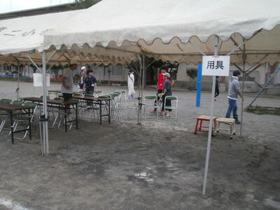 6時30分には親父の会の方たちとPTAボランティアの方たちが準備に駆けつけてくださいました。職員と一緒に準備をしました。本当に感謝です。