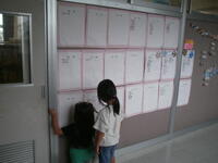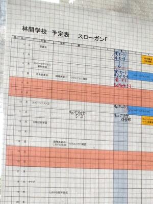 5年生の廊下には林間学校に向けてのスケジュール表が貼ってありました。