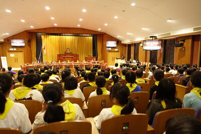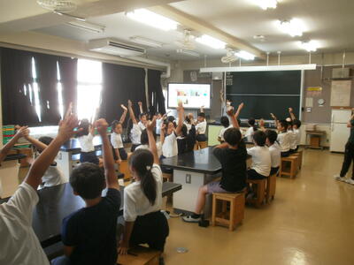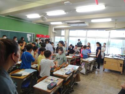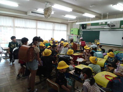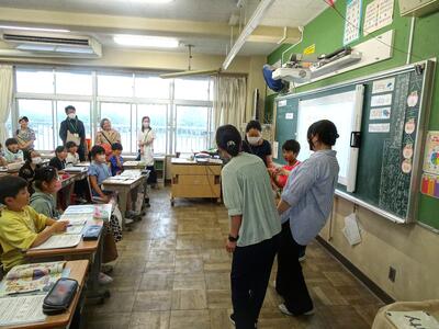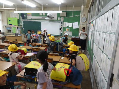 発表や外国語活動、パネルディスカッション、保護者に参加していただいての活動などいろいろな授業を見ていただきました。授業参観後は引き渡し訓練の雨バージョンを行いました。