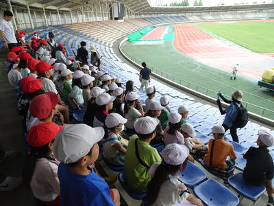 今回はトラックの整備中で実際に走ることは出来ませんでしたが、20000人入る競技場に圧倒されていました。