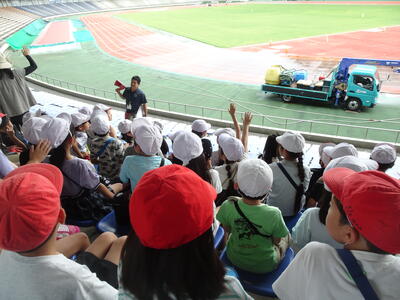 今日は4年生が校外学習に行きました。行き先はクリーンセンターとリサイクルプラザです。先日授業でも下水道について学習しましたが今日は私たちの出したゴミがどのようになっていくかを学習してきました。