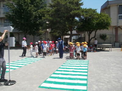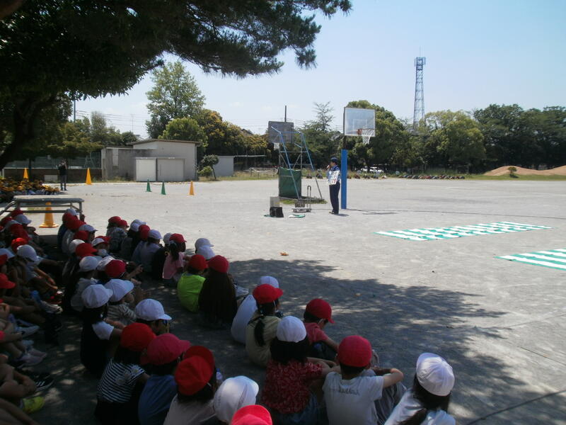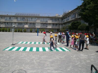 今日は1,2年生を対象とした交通安全教室が行われました。警察署の方が横断歩道の渡り方について説明をしてくださいました。