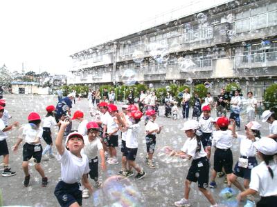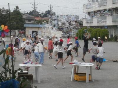 一通り教えていただいた後は自由にシャボン玉を作る時間。子どもたちは、「待ってました」と言わんばかりに夢中になってシャボン玉をつくっていました。