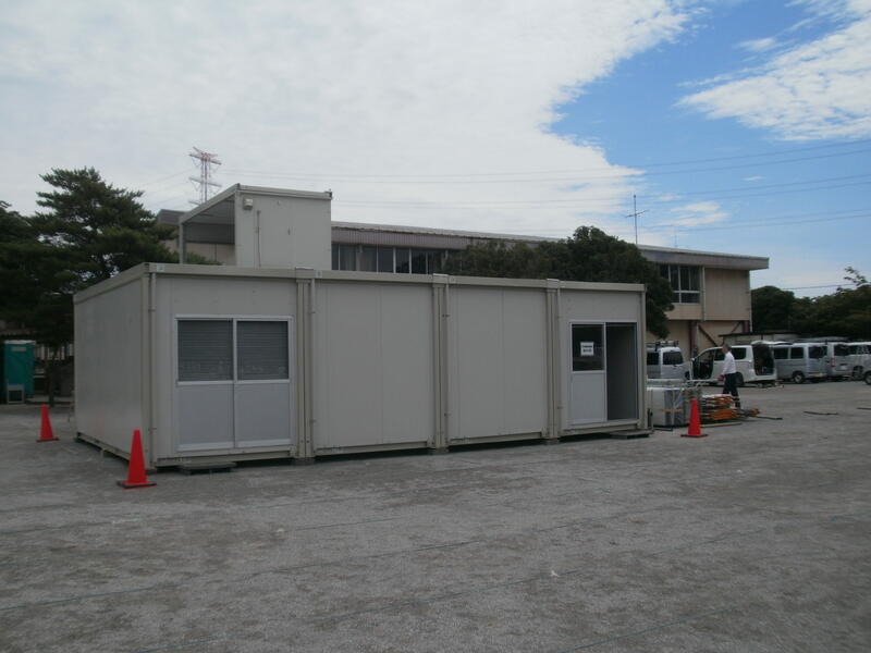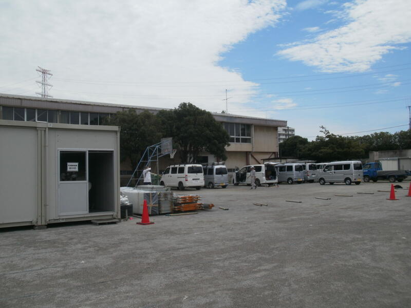 体育館と体育倉庫の中にあるものを収納する仮設倉庫が出来ました。