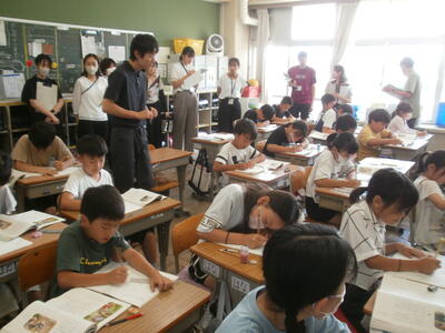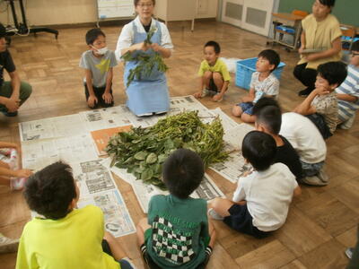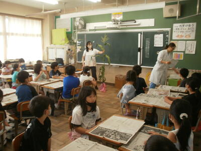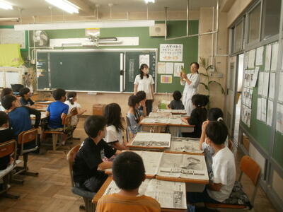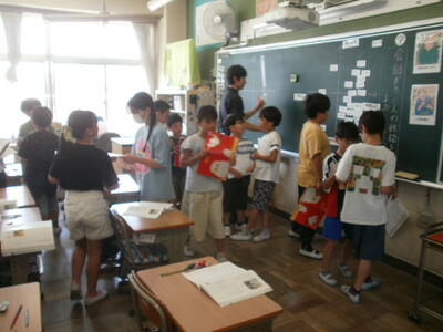 2年生は1学期の色々な行事の思い出を,4年生は先日行った校外学習で学んできたことを発表しクイズにしました。