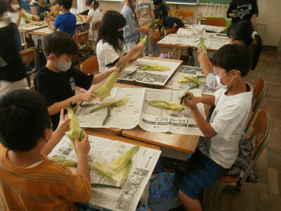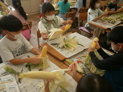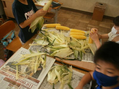 むいたトウモロコシは給食で食べました。と~ても甘かったです。