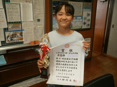 先週、校長室で全国女子相撲選抜ひめじ大会に出場した児童の表彰を行いました。結果は準優勝。