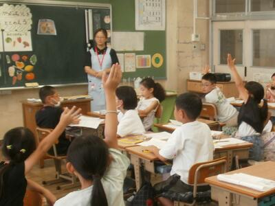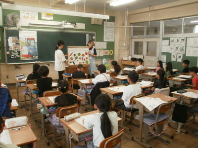 食育の授業第2弾は3年生。「元気になるには何を食べれば良いのだろう」という内容の授業でした。