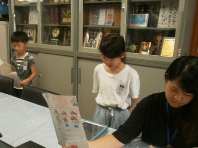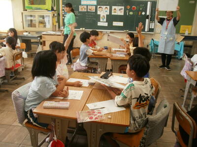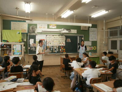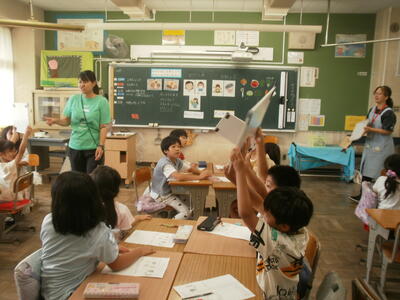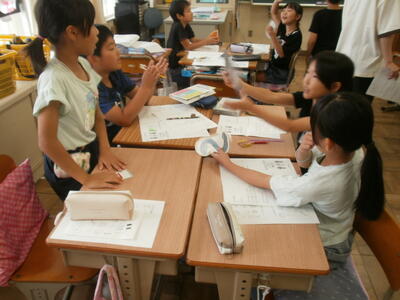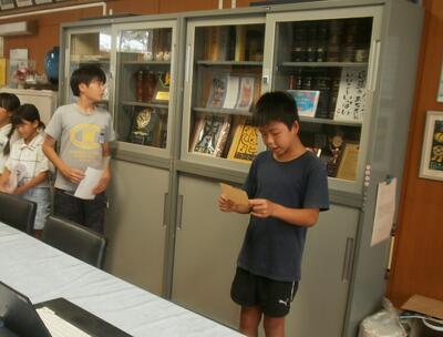 2年生は1学期の色々な行事の思い出を,4年生は先日行った校外学習で学んできたことを発表しクイズにしました。