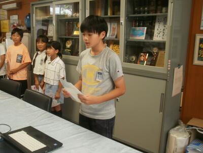 今日は終業式でした。体育館は工事で使えないことと暑さからオンラインで実施しました。