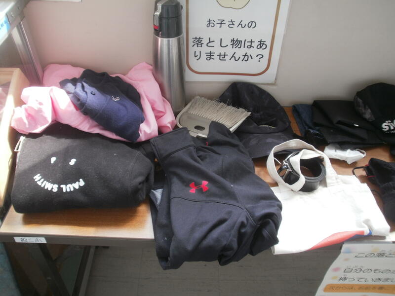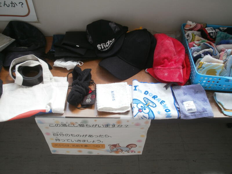 そして今日から夏休み。職員室前の忘れ物置き場の様子です。
