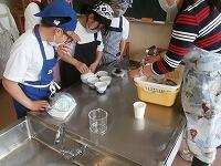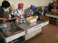 本格的な実習に入る前に「お湯を沸かす」、「ガスコンロなどの調理器具の使い方を知る」、「安全について学ぶ」ことが本学習の主なねらいです。どのグループも慎重に丁寧に活動していました。
