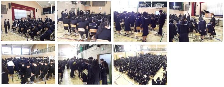 体育館に響き渡る力強い歌声とともに式が始まりました。全校生徒が心を一つにして校歌を歌いました。