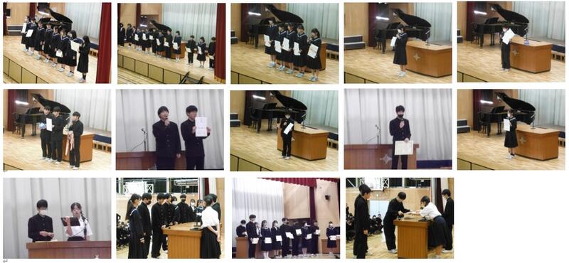 式に先立ち、今学期に文化・スポーツの各方面で活躍した生徒たちの表彰報告が行われました。日頃の努力が実を結び、多くの生徒が堂々とした表情で報告を行うことができました。それぞれの報告を聞いて、会場は温かい拍手に包まれました。